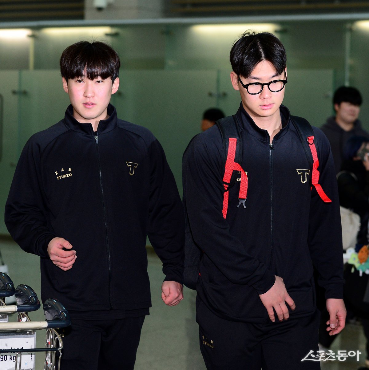 KIA 타이거즈가 22일 인천국제공항을 통해 2025시즌 스프링캠프가 열리는 미국으로 출국한다. KIA 윤영철과 곽도규가 출국장으로 향하고 있다. 인천국제공항 | 김민성 기자 marineboy@donga.com