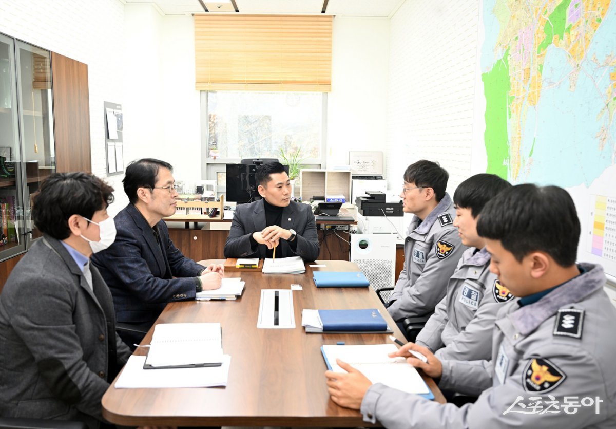 더불어민주당 김지호 의원(가운데)이 `의정부시 범죄방지 예방을 위한 유관기관 간담회개최하고 있다. 사진제공ㅣ의정부시의회