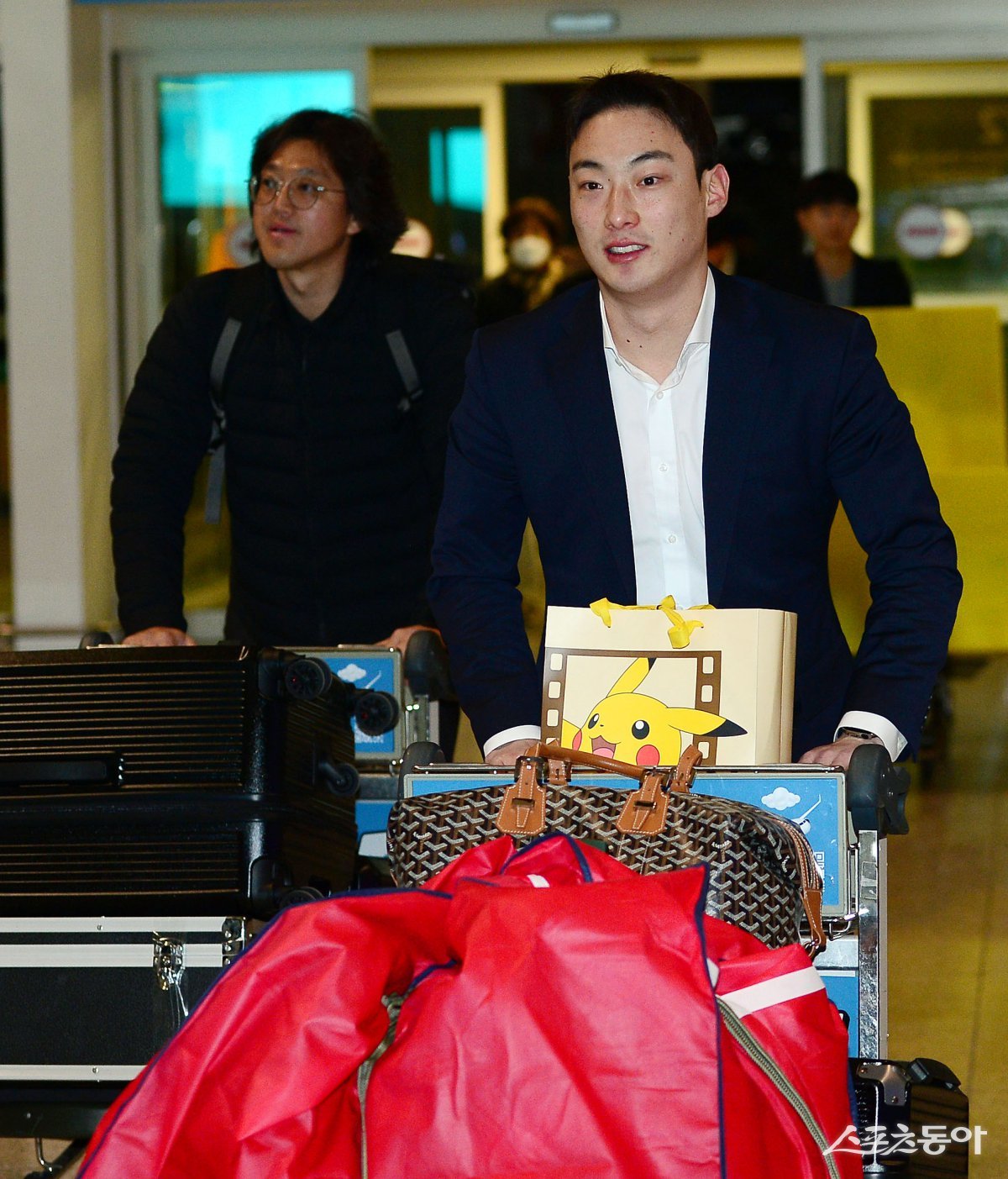 SSG 랜더스가 23일 인천국제공항을 통해 2025시즌 스프링캠프가 열리는 미국으로 출국한다. SSG 최지훈이 출국장으로 향하고 있다. 인천국제공항 | 김민성 기자 marineboy@donga.com