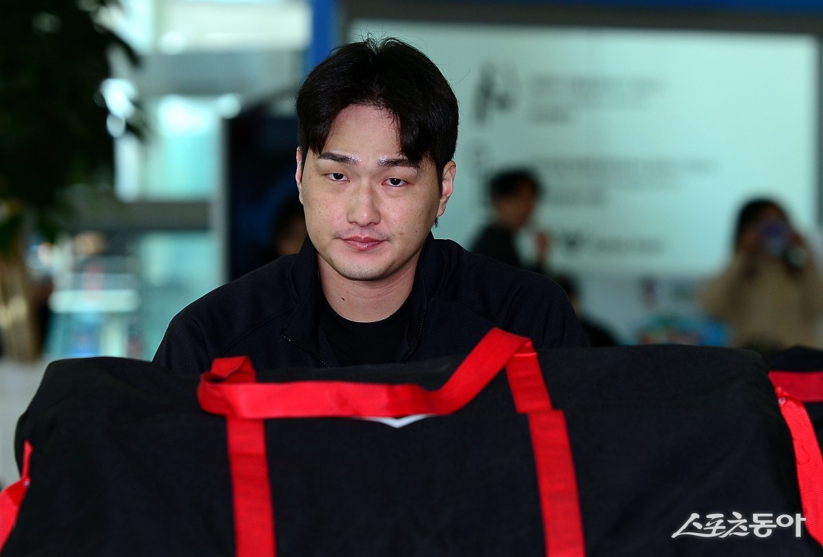 KIA 타이거즈가 23일 인천국제공항을 통해 2025시즌 스프링캠프가 열리는 미국으로 출국한다. KIA 전상현이 출국장으로 향하고 있다. 인천국제공항 | 김민성 기자 marineboy@donga.com
