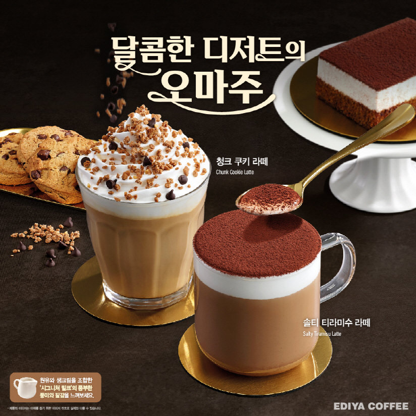 시그니처 밀크는 우유와 생크림을 조화롭게 배합해 묵직한 바디감과 고소한 맛이 특징이다. 신제품 2종은 ‘솔티 티라미수 라떼’와 ‘청크 쿠키 라떼’로 구성했다.