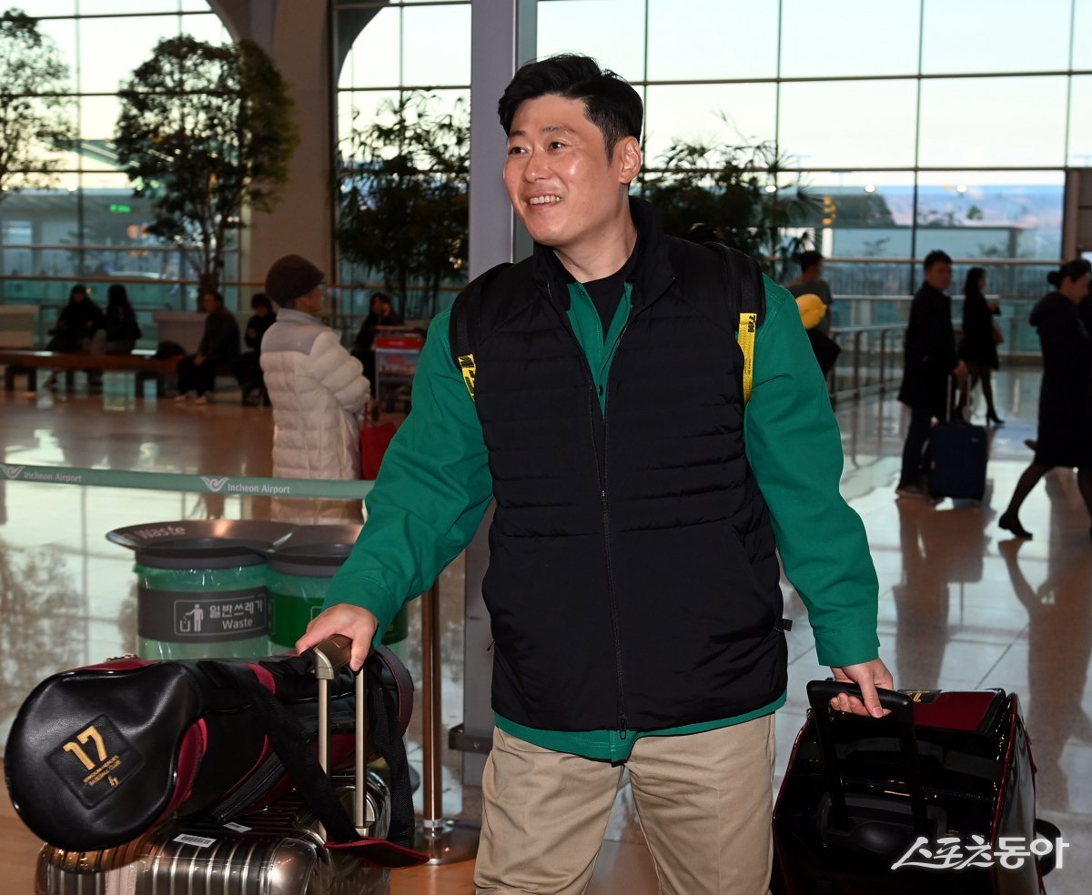 키움 히어로즈가 23일 인천국제공항을 통해 2025시즌 스프링캠프가 열리는 미국으로 출국한다. 키움 이원석이 출국을 준비하고 있다. 인천국제공항 | 김민성 기자 marineboy@donga.com