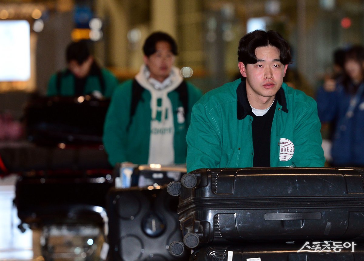 키움 히어로즈가 23일 인천국제공항을 통해 2025시즌 스프링캠프가 열리는 미국으로 출국한다. 키움 김웅빈이 출국장으로 향하고 있다. 인천국제공항 | 김민성 기자 marineboy@donga.com