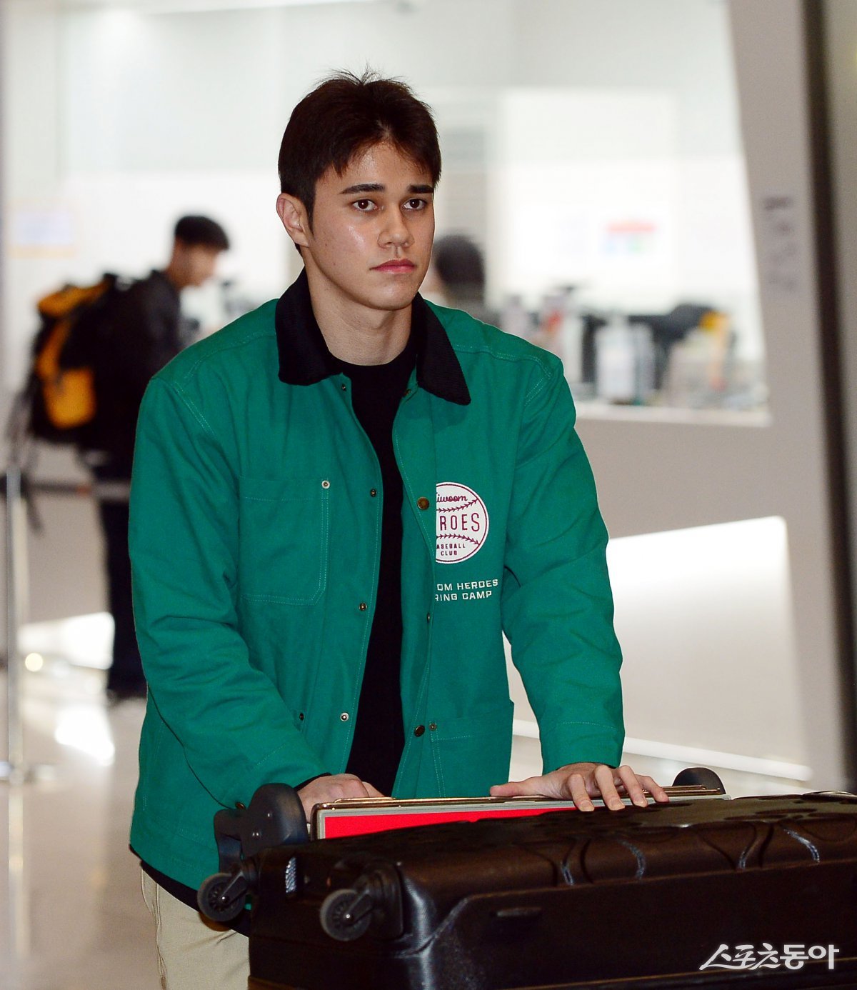 키움 히어로즈가 23일 인천국제공항을 통해 2025시즌 스프링캠프가 열리는 미국으로 출국한다. 키움 김병휘가 출국을 준비하고 있다. 인천국제공항 | 김민성 기자 marineboy@donga.com