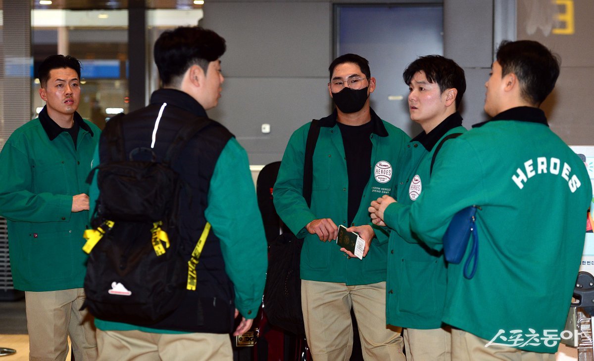 키움 히어로즈가 23일 인천국제공항을 통해 2025시즌 스프링캠프가 열리는 미국으로 출국한다. 키움 선수들이 모여 출국을 준비하고 있다. 인천국제공항 | 김민성 기자 marineboy@donga.com