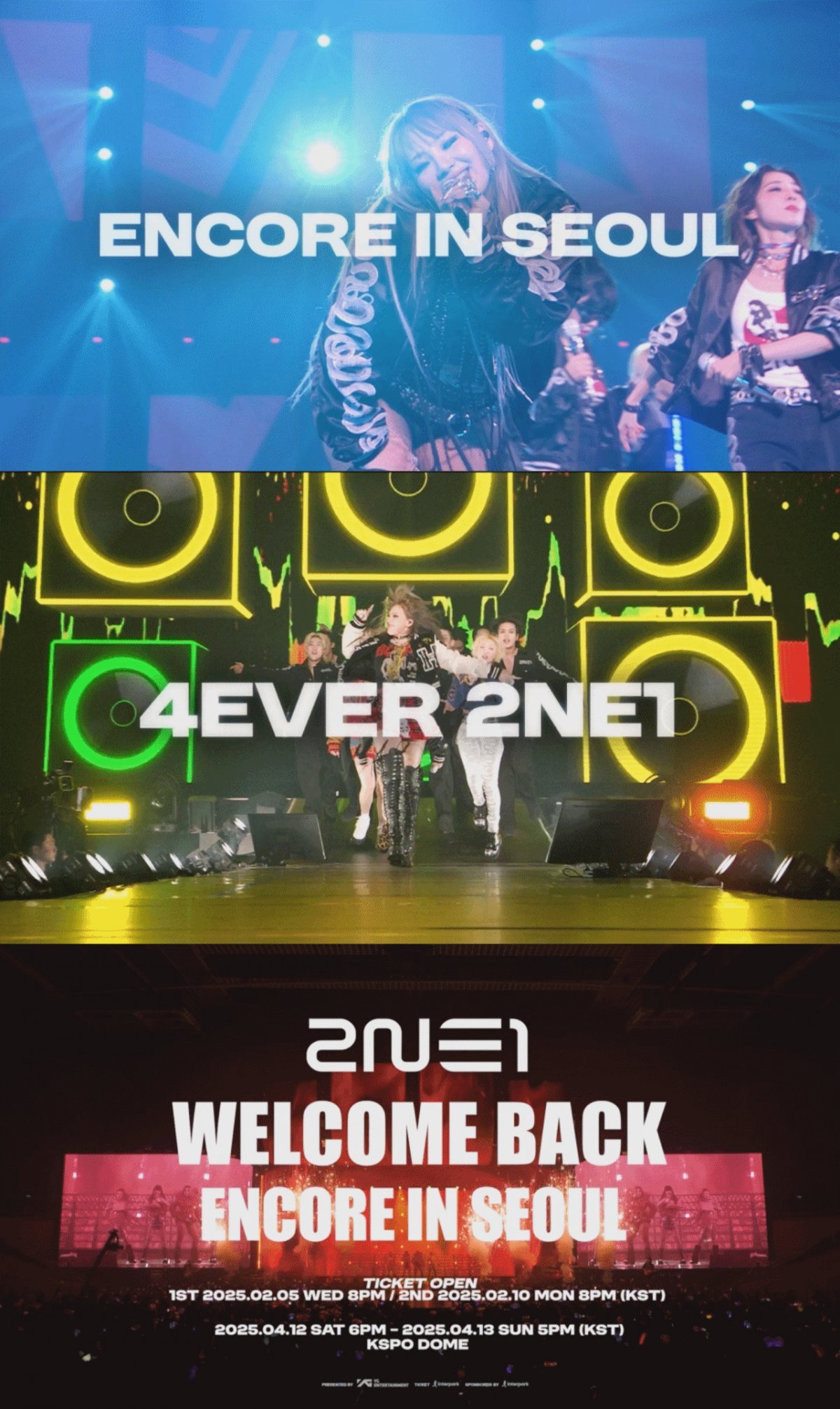 ‘2025 2NE1 CONCERT [WELCOME BACK] ENCORE IN SEOUL’은 오는 4월 12일과 13일 양일간 서울 KSPO DOME에서 개최된다. 연이은 전석 매진 속 12개 도시, 27회차에 달하는 아시아 투어를 전개한 뒤 국내팬들과 재회하는 자리다.