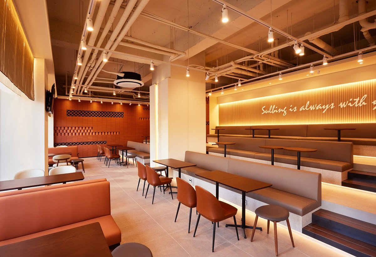 특히 빙수의 우유 얼음에서 착안한 아이보리 색상을 토대로, 인절미의 베이지 색상과 팥의 브라운 색상 등을 조화롭게 사용했으며, 석촌호수 뷰를 바라보도록 좌석을 배치해 고객에게 행복과 여유를 선사한다.