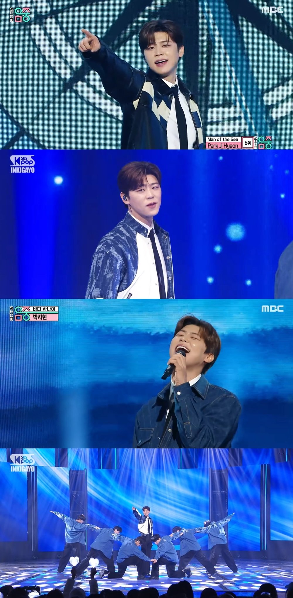 ‘바다 사나이’ 무대는 박지현의 깨끗하면서도 탁 트인 보컬, 거센 파도에 맞서 배의 키를 잡는 모션의 안무로 ‘바다’를 상징적으로 그려냈다. 목포에서 태어나고 자란 자신의 정체성을 첫 앨범 ‘OCEAN’에 녹여낸 그는 여유와 갈고닦은 실력을 마음껏 발산했다.