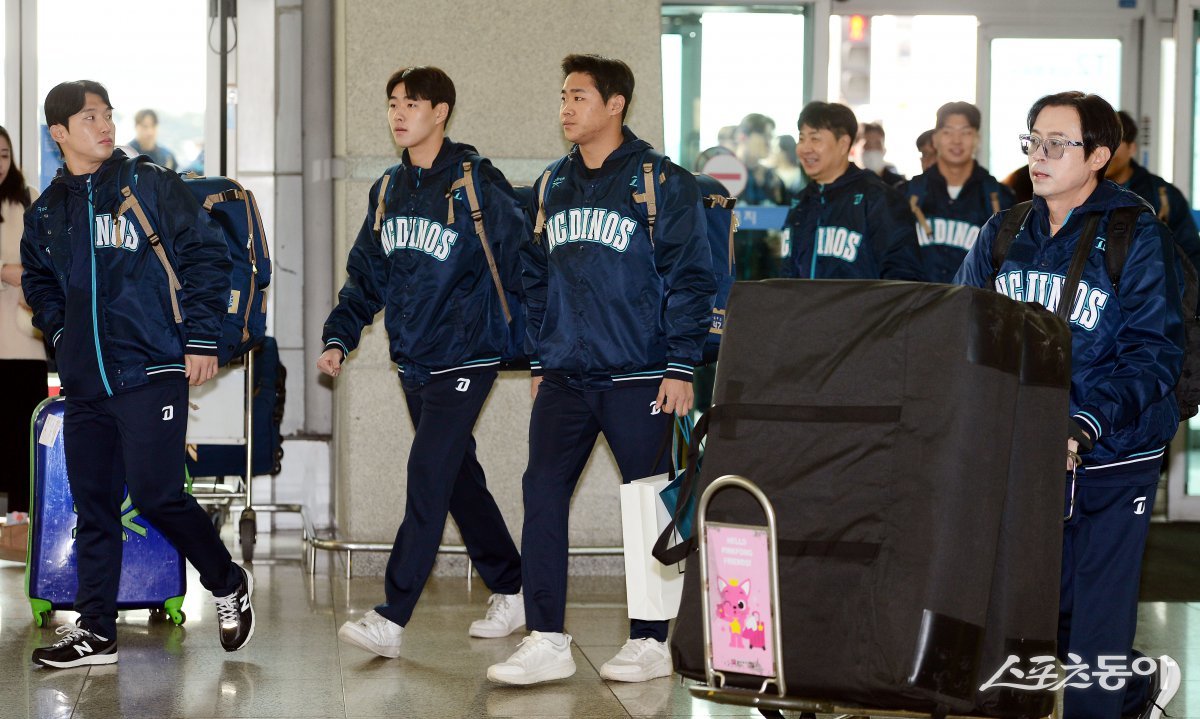 NC 다이노스가 30일 인천국제공항을 통해 2025시즌 스프링캠프가 열리는 미국으로 출국한다. NC 선수들이 출국장으로 향하고 있다. 인천국제공항 | 김민성 기자 marineboy@donga.com