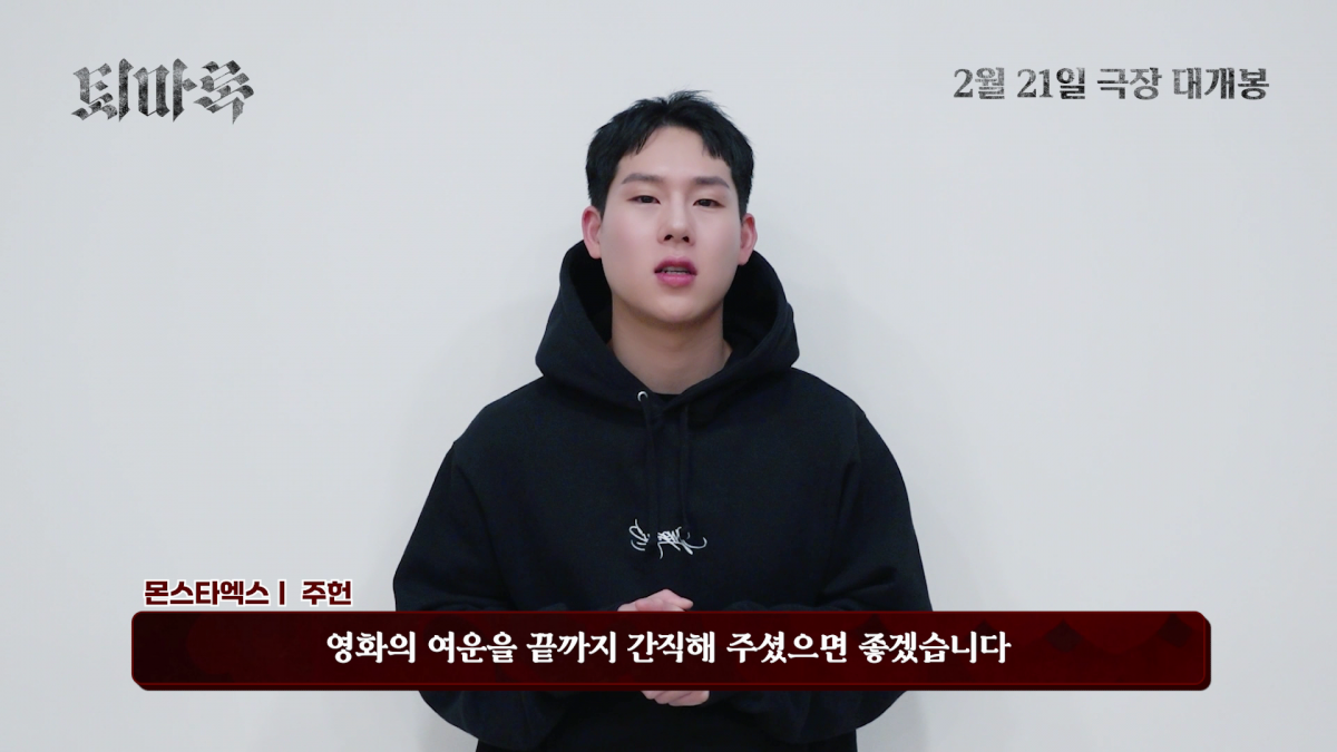 ‘퇴마록’은 특별한 능력을 가진 퇴마사들이 절대 악(惡)에 맞서는 대서사의 시작을 담은 오컬트 블록버스터. 엔딩곡에 삽입된 몬스타엑스의 ‘비스트모드(BEASTMODE)’를 작사하고 작곡한한 주헌이 영화의 개봉을 축하하며 응원의 메시지를 전했다.