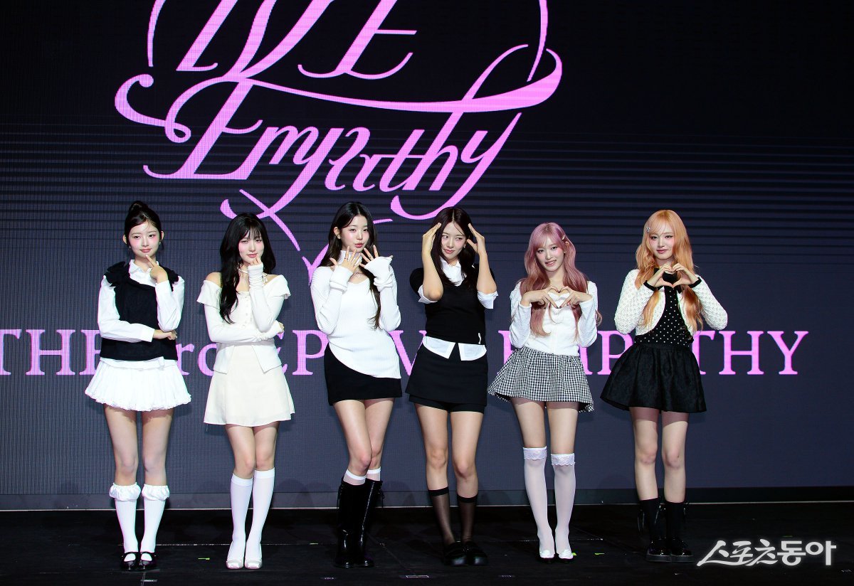 3일 서울 여의도 콘래드 서울에서 아이브(IVE)가 세 번째 미니 앨범 ‘아이브 엠파시(IVE EMPATHY)’를 발매하고 기자간담회를 가졌다. 아이브 레이(왼쪽부터), 가을, 장원영, 안유진, 이서, 리즈가 카메라를 향해 포즈를 취하고 있다. 김민성 기자 marineboy@donga.com