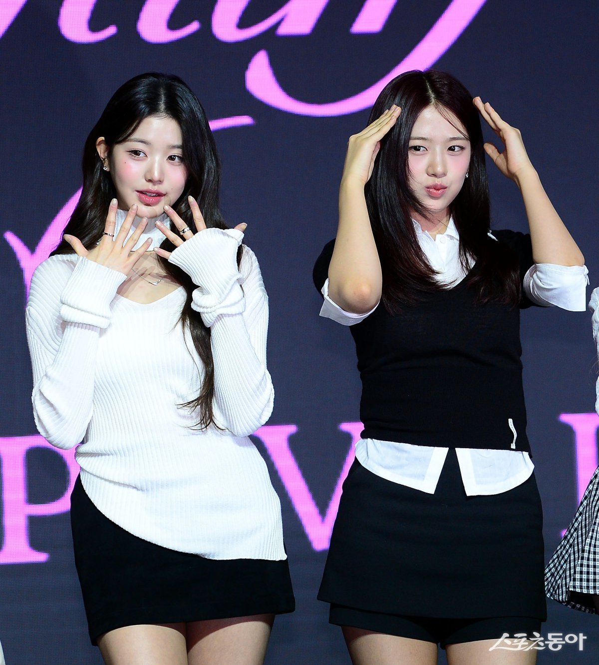 3일 서울 여의도 콘래드 서울에서 아이브(IVE)가 세 번째 미니 앨범 ‘아이브 엠파시(IVE EMPATHY)’를 발매하고 기자간담회를 가졌다. 아이브 장원영, 안유진이 카메라를 향해 포즈를 취하고 있다. 김민성 기자 marineboy@donga.com