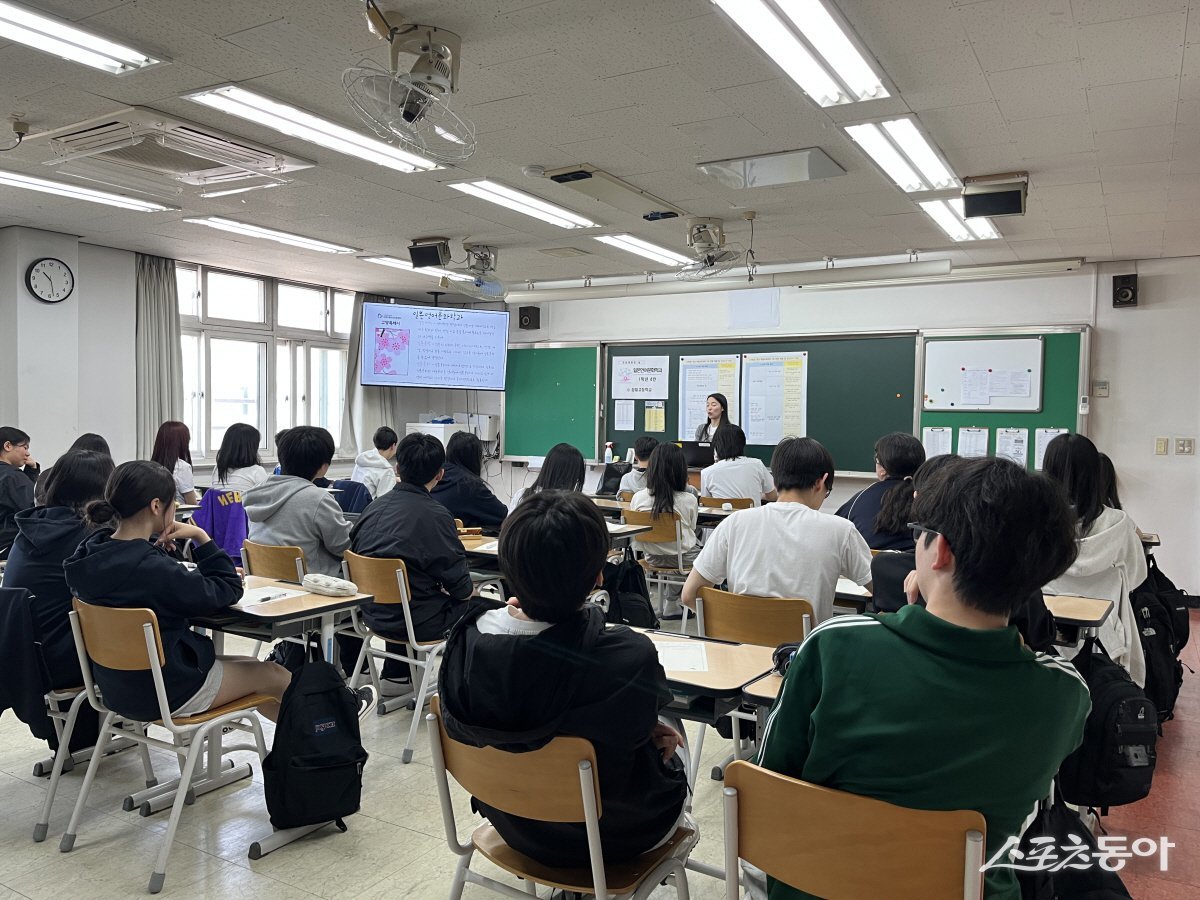 ‘고양유니브‘ 의 대학생 멘토가 학교를 방문해 학과 멘토링을 진행하고 있다. 사진제공ㅣ고양시