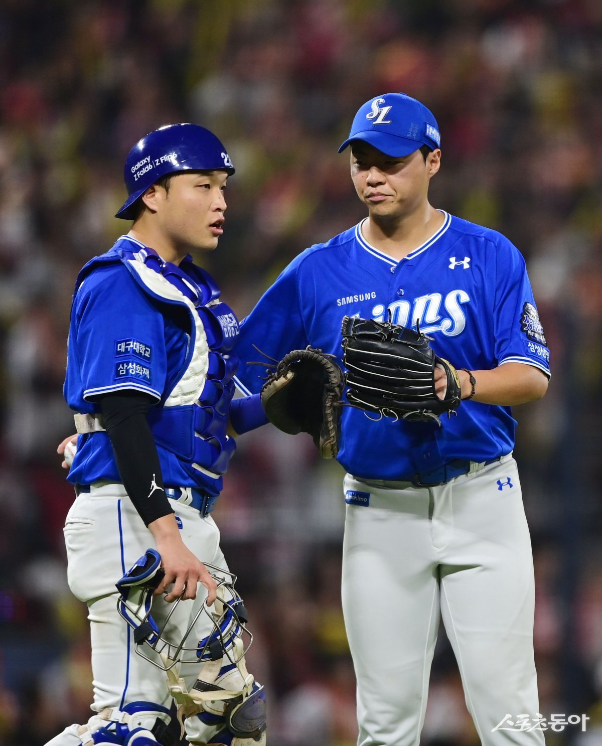 삼성 김무신(오른쪽)은 지난해 PS에서 불펜의 히든카드로 역투했다. 2025시즌에는 삼성 불펜의 새로운 필승카드로 자리 잡을지 궁금하다. 스포츠동아DB