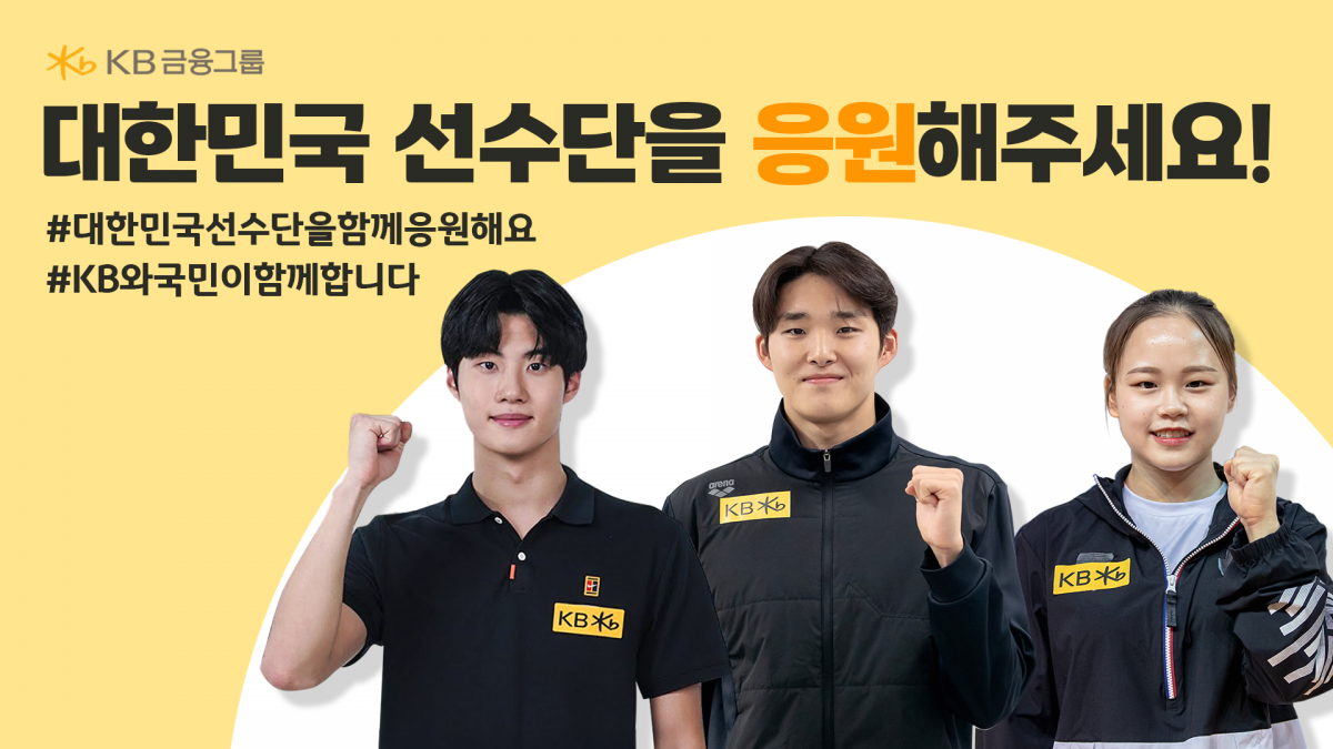 특히 KB금융과 주요 계열사인 KB국민은행이 후원하는 대표 스포츠 선수와 함께 응원 캠페인을 전개하는 게 특징이다. 수영의 황선우·김우민·지유찬, 체조 여서정, 여자농구단 KB스타즈 허예은이 참여한 릴레이 응원 메시지 등 대한민국 선수단에게 힘찬 희망과 응원의 메시지를 전달한다. 또 자사 캐릭터인 ‘스타프렌즈’도 동참한다. 응원 영상은 대회 개최 기간에 맞춰 KB금융 공식 SNS계정을 통해 공개한다.