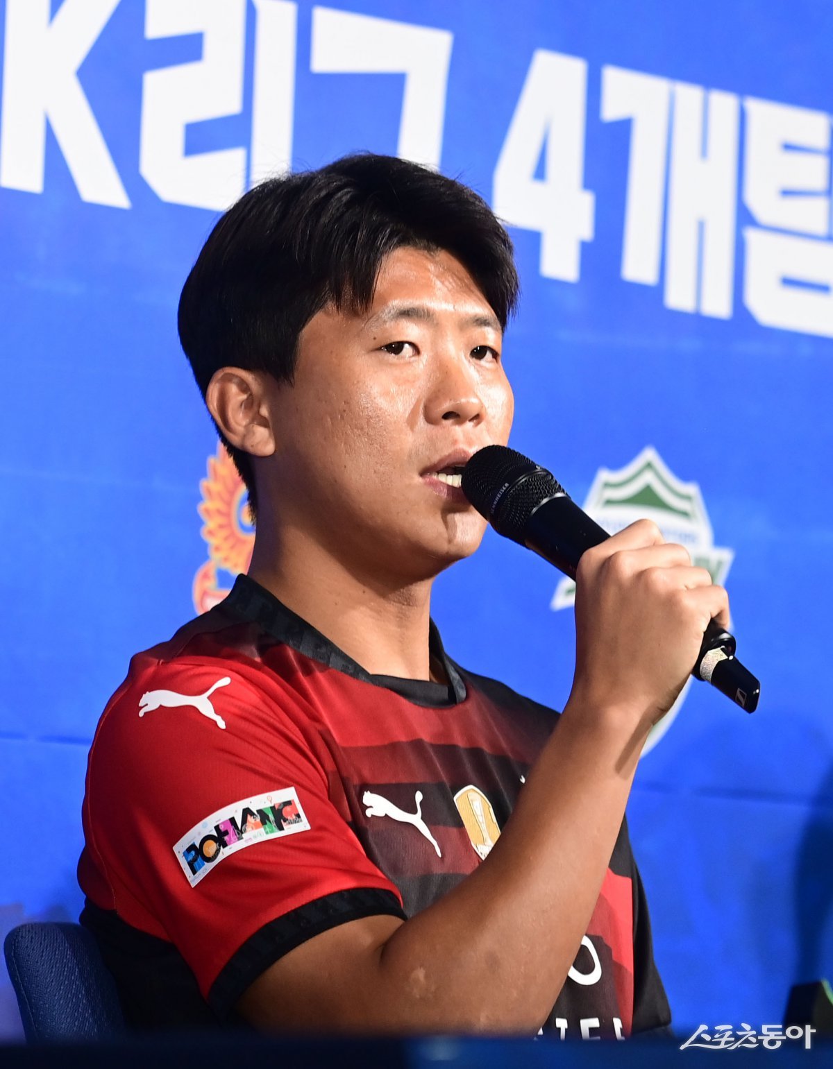 포항 전민광이 5일 서울 종로구 축구회관에서 열린 ‘2024-25 ACL 참가 K리그 4개팀 미디어데이’에서 출사표를 말하고 있다. 주현희 기자 teth1147@donga.com