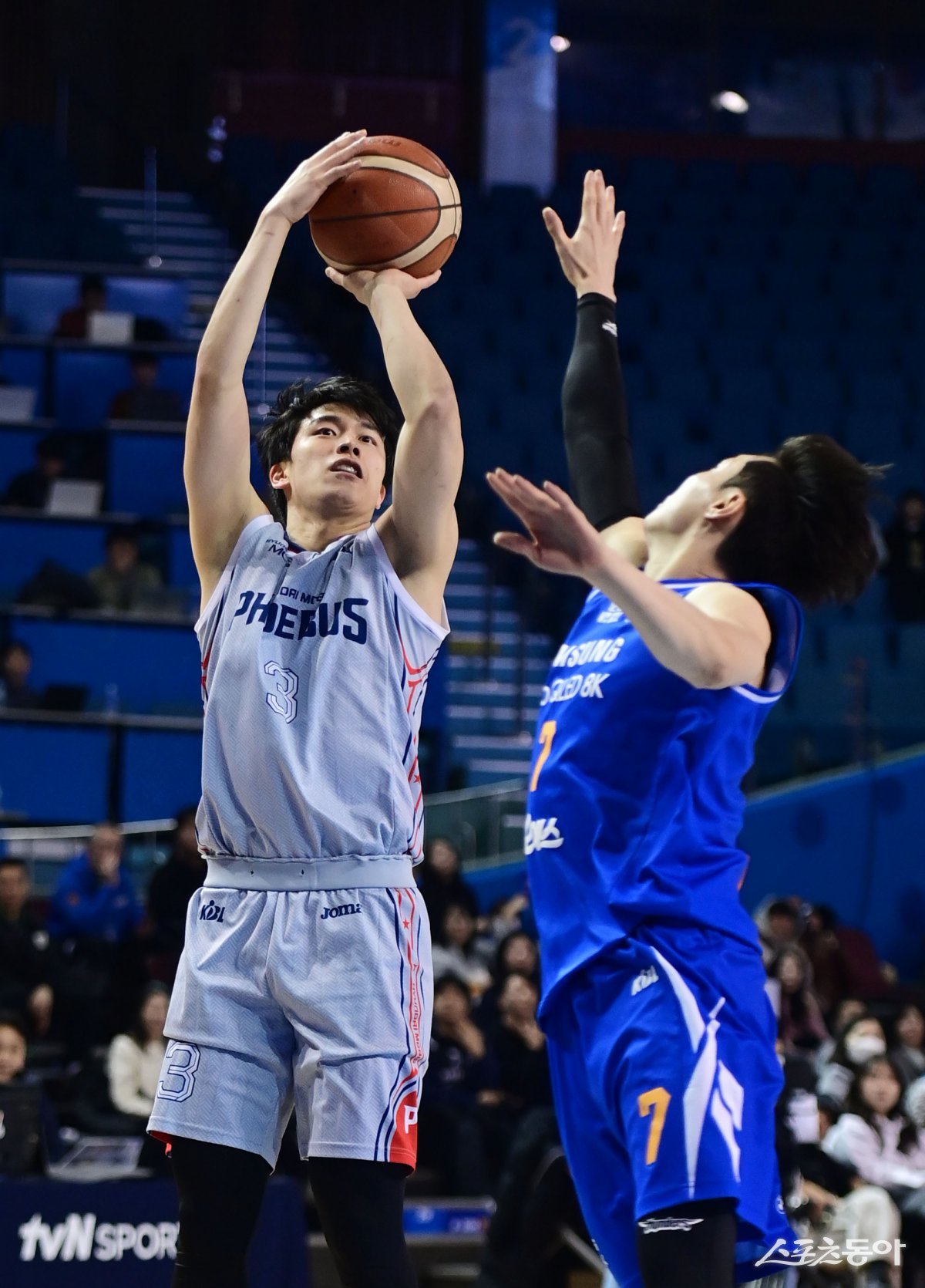 5일 서울 잠실실내체육관에서 열린 ‘2024-2025 KCC 프로농구’ 삼성과 현대모비스의 경기에서 현대모비스 박무빈이 슛을 하고 있다. 잠실 | 주현희 기자 teth1147@donga.com