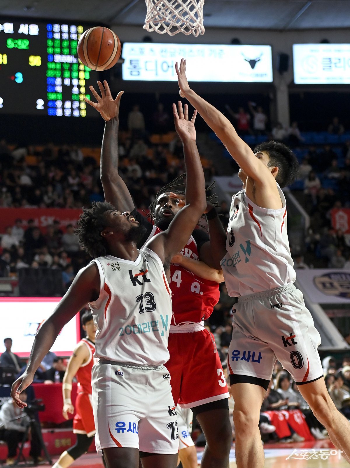 6일 서울 잠실학생체육관에서 열린 ‘2024-2025 프로농구’ SK와 KT 경기에서 SK 워니가 KT의 수비를 뚫고 골밑 슛을 하고 있다. 잠실|김종원 기자 won@donga.com