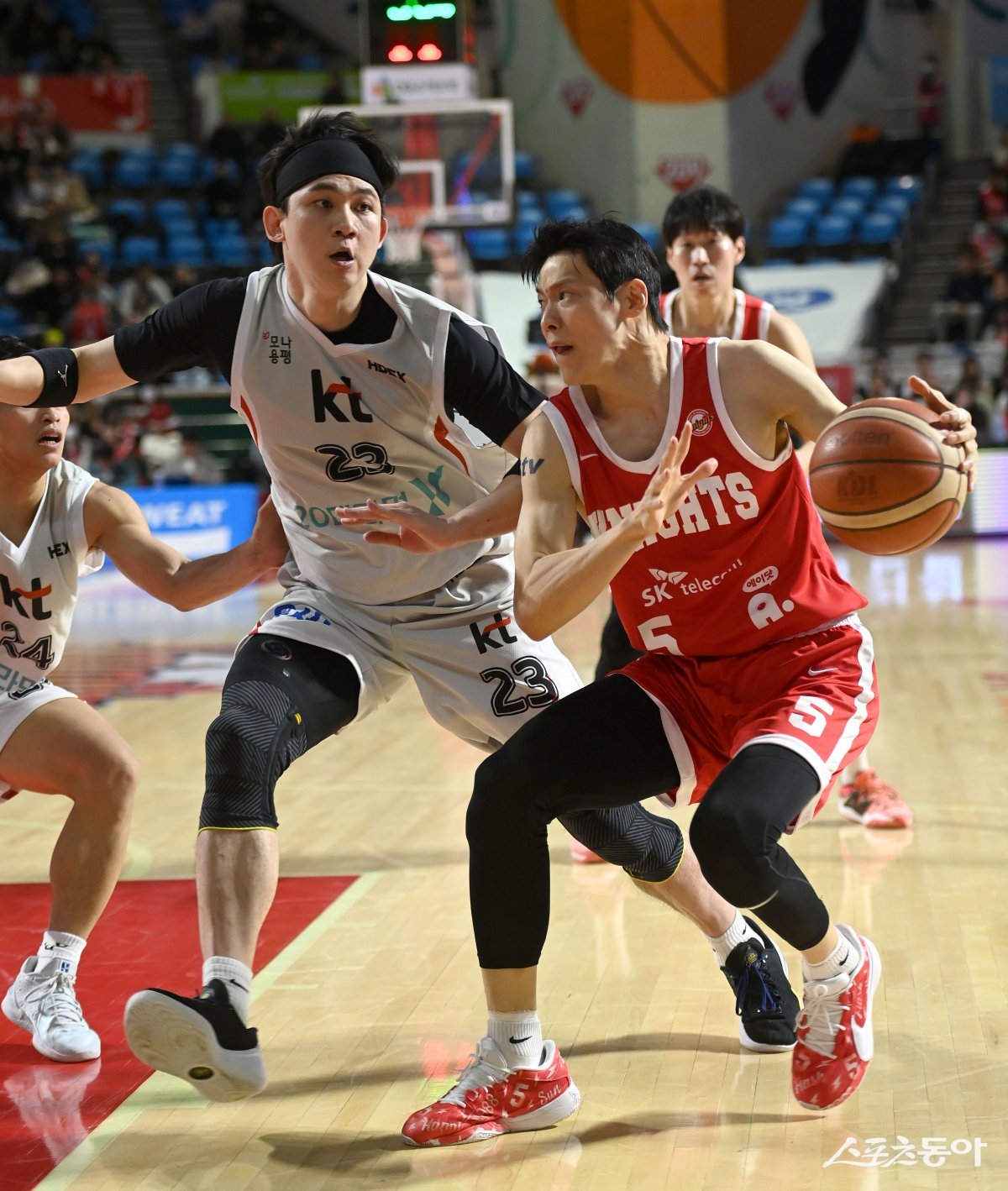 6일 서울 잠실학생체육관에서 열린 ‘2024-2025 프로농구’ SK와 KT 경기에서 SK 김선형이 KT의 수비를 뚫고 골밑을 공격하고 있다. 잠실|김종원 기자 won@donga.com