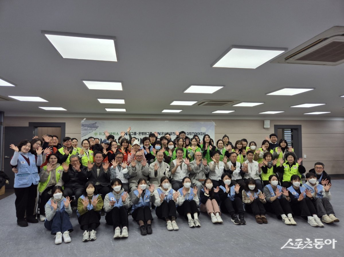 국제의료봉사단체 그린닥터스재단과 온병원그룹은 주말인 지난 8일 오후 경남 밀양시 삼랑진읍서 의료봉사 활동을 펼친 가운데 관계자들이 기념촬영을 하고 있다 (사진제공=그린닥터스)