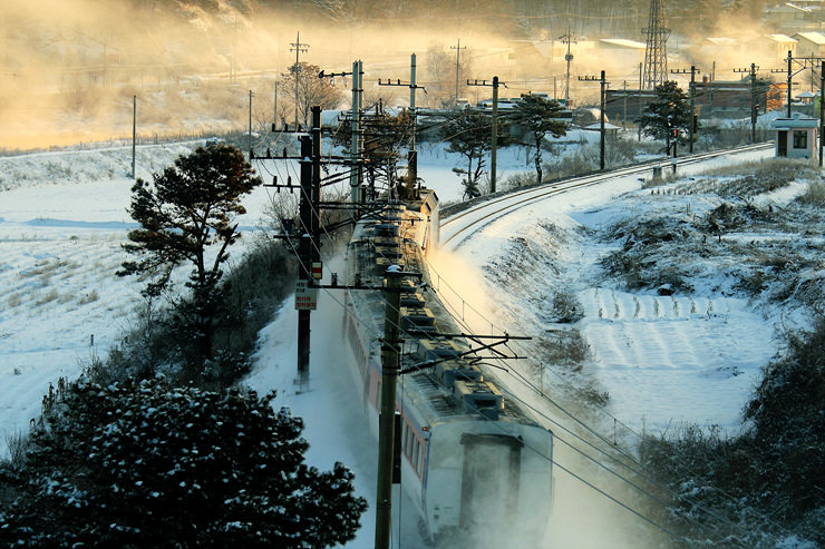 제천조차장역을 지나는 눈꽃열차 사진제공|코레일