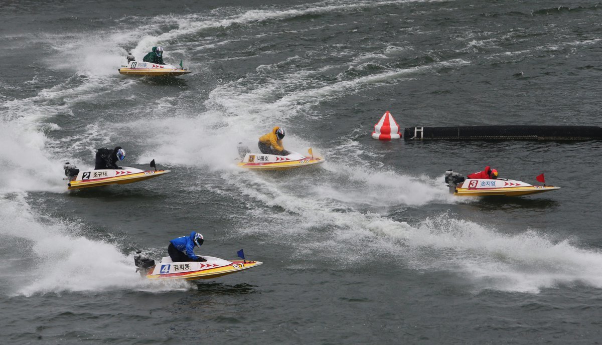 미사경정장에서 선수들이 턴마크를 돌며 경합을 벌이고 있다 사진제공|국민체육진흥공단