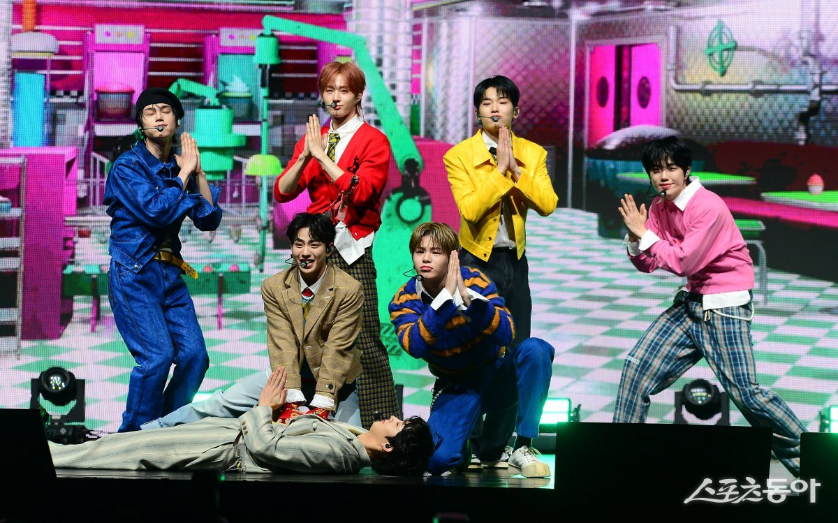 이븐(EVNNE) 네 번째 미니 앨범 ‘핫 메스(HOT MESS)’ 발매 기념 쇼케이스가 10일 서울 광진구 예스24라이브홀에서 열렸다. 이븐이 타이틀곡 ‘HOT MESS’를 공연하고 있다. 김민성 기자 marineboy@donga.com