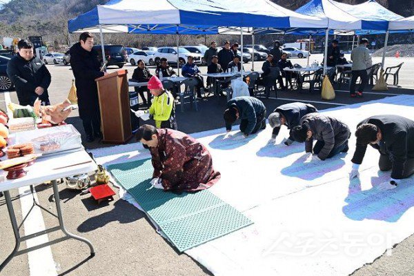 고령군자전거연맹이 군민안전과 자전거문화 활성화를 위한 시륜제를 지내고 있다. 사진제공 ㅣ 고령군