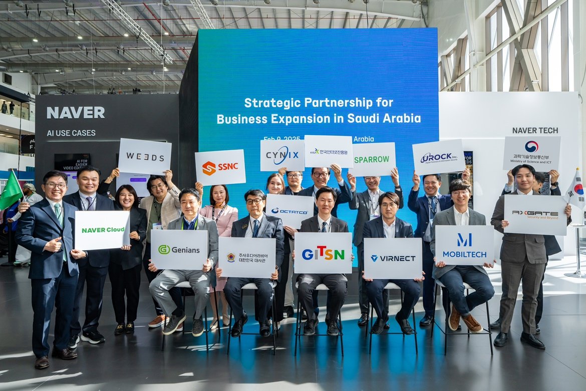 네이버클라우드는 10일(현지시간) 사우디아라비아 리야드에서 열린 전시회 ‘LEAP 2025’ 에서 스타트업들과 함께 ‘사우디 디지털 시장 진출을 위한 국내 디지털 기업 간 정보교류 및 사업협력’ 양해각서(MOU)를 체결했다. 이번 행사에 참가한 보안, 스마트시티, 자율주행, AI 솔루션, SW개발 등 다양한 분야의 국내 디지털 스타트업들이 함께했다.