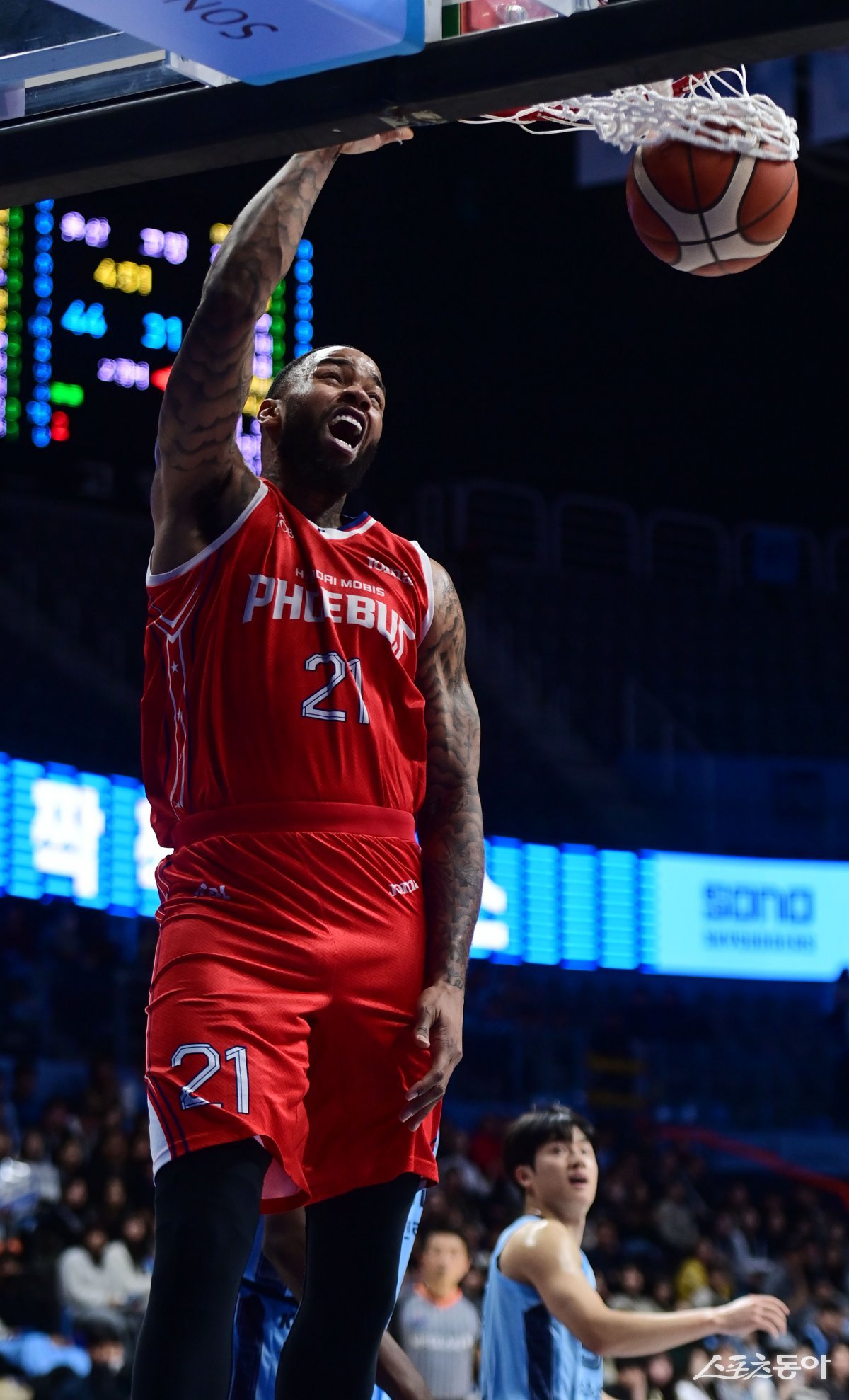 11일 고양소노아레나에서 열린 ‘2024-2025 KCC 프로농구’ 소노와 현대모비스의 경기에서 현대모비스 숀롱이 소노 수비를 뚫고 덩크슛을 하고 있다. 고양 | 주현희 기자 teth1147@donga.com
