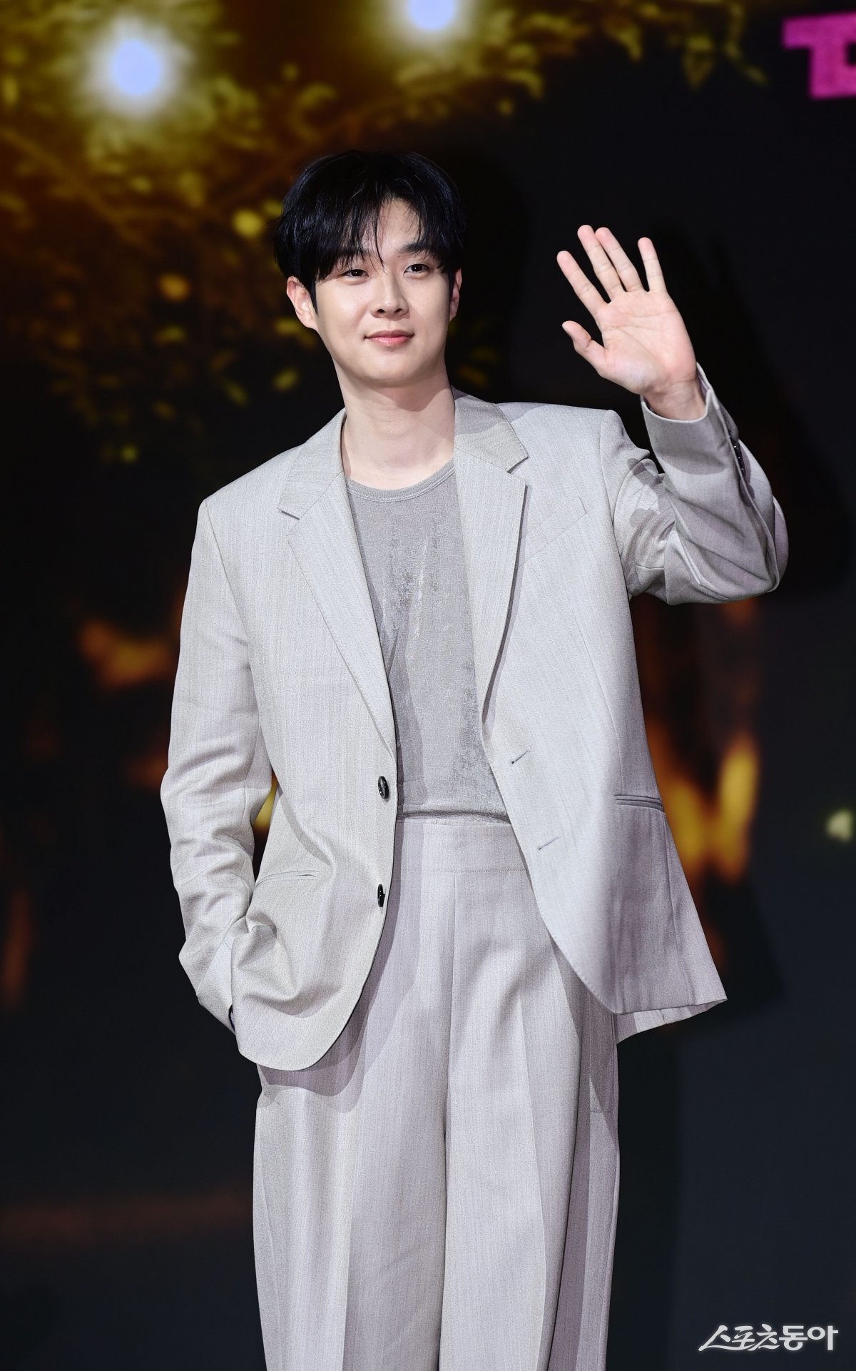 배우 최우식이 12일 서울 종로구 JW메리어트동대문스퀘어서울에서 열린 넷플릭스 ‘멜로무비’ 제작발표회에서 포즈를 취하고 있다. 주현희 기자 teth1147@donga.com