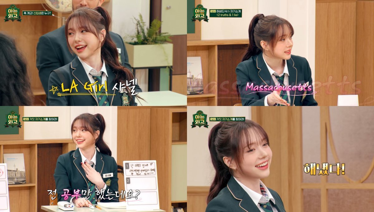 ‘아는 외고’는 한국으로 터전을 옮긴 외국인 셀럽들이 명문 예능 국제고 아는 외고 학생으로 변신해 펼치는 캐릭터 버라이어티다. 문샤넬은 MC 붐과 사쿠라, 조나단, 민니, 레오, 저스틴하비, 박제니, 알베르토와 아는 외고생으로 함께하며 첫 만남부터 찰진 케미를 선보였다.