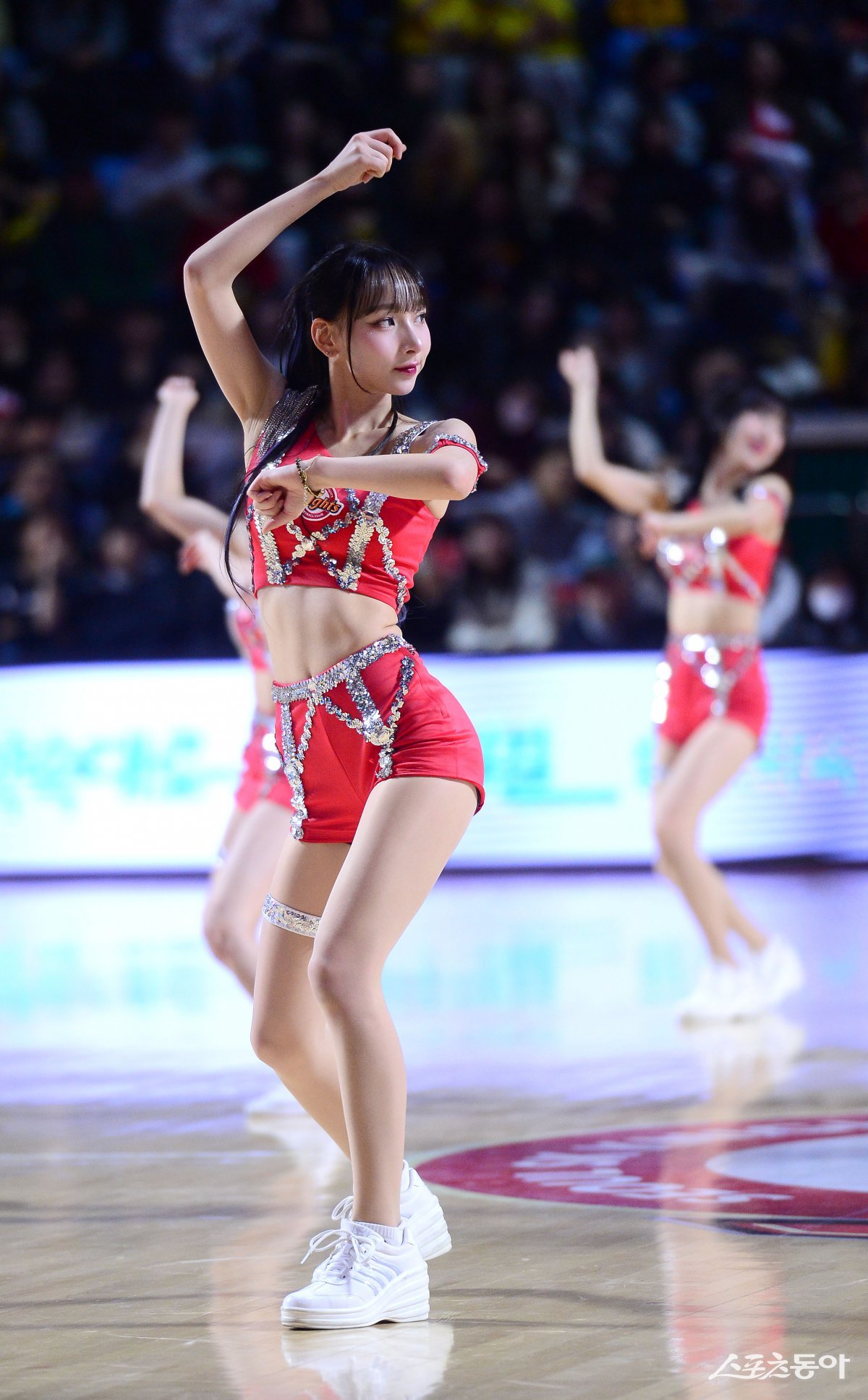 12일 서울 잠실학생체육관에서 열린 ‘2024-2025 프로농구’ SK와 LG 경기에서 SK 치어리더가 응원을 펼치고 있다. 잠실|김종원 기자 won@donga.com