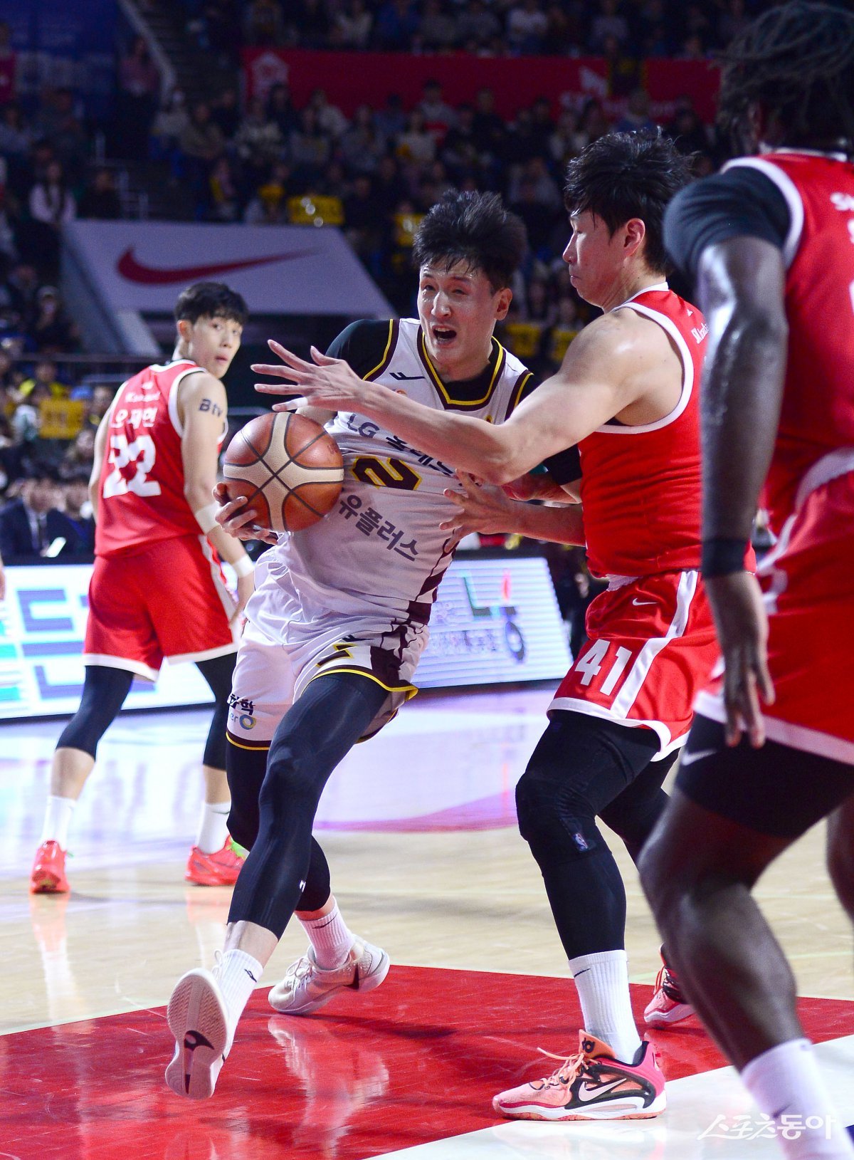 12일 서울 잠실학생체육관에서 열린 ‘2024-2025 프로농구’ SK와 LG 경기에서 LG 최진수가 SK의 수비를 뚫고 골밑을 공격하고 있다. 잠실|김종원 기자 won@donga.com