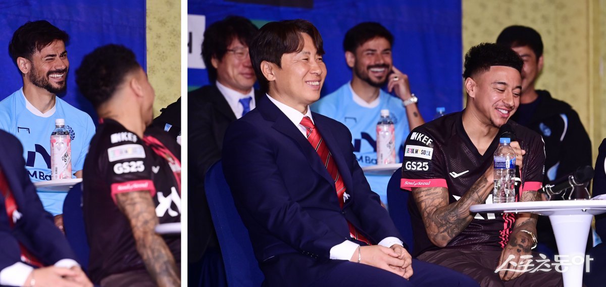 13일 서울 서대문구 홍은동 스위스그랜드호텔에서 열린 ‘K리그 1 2025 개막 미디어데이’에서 대구FC 세징야의 답변에 FC서울 린가드가 농담을 하고 있다. 주현희 기자 teth1147@donga.com