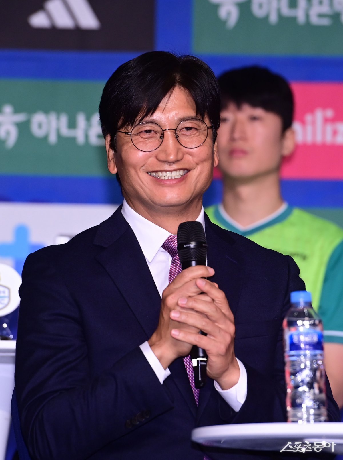 13일 서울 서대문구 홍은동 스위스그랜드호텔에서 열린 ‘K리그 1 2025 개막 미디어데이’에서 김천 상무 정정용 감독이 출사표를 말하고 있다. 주현희 기자 teth1147@donga.com