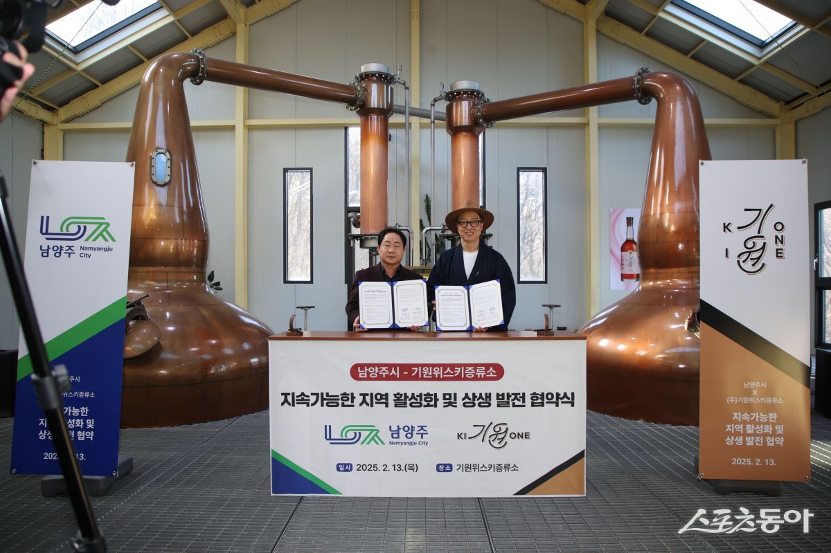 남양주시(시장 주광덕)는 13일 국내 최초 싱글몰트 위스키 증류소인 ㈜기원위스키증류소와 ‘지속가능한 지역 활성화 및 상생 발전 협약’을 체결했다.