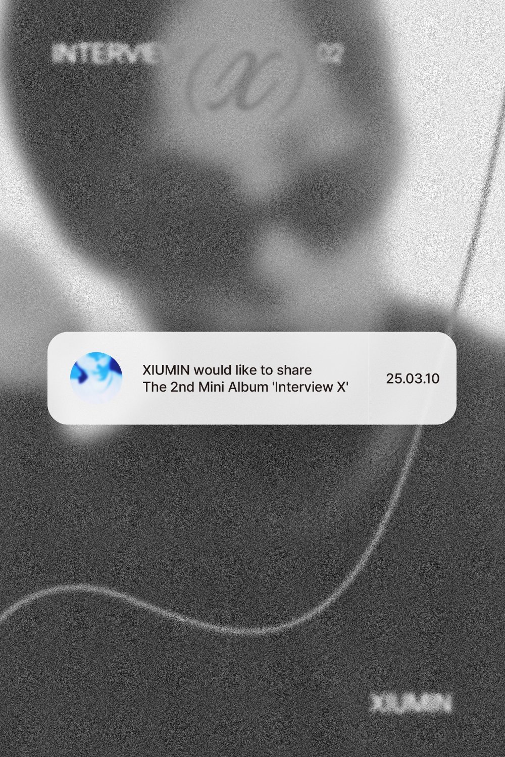 핸드폰에 메시지 알림이 뜬 것 같은 컴백 이미지에는 “XIUMIN would like to share The 2nd Mini Album ‘Interview X’ (시우민이 미니 2집 ‘Interview X(인터뷰 엑스)’를 공유하려고 합니다)’’라는 문구와 함께 ‘25. 03.10’이라는 숫자가 표기됐다. 이를 통해 시우민이 오는 3월 10일 새 앨범을 발표할 것임을 암시했다. 배경화면에는 선글라스를 착용한 시우민의 모습이 흐릿하게 담겨 기대감을 더했다.