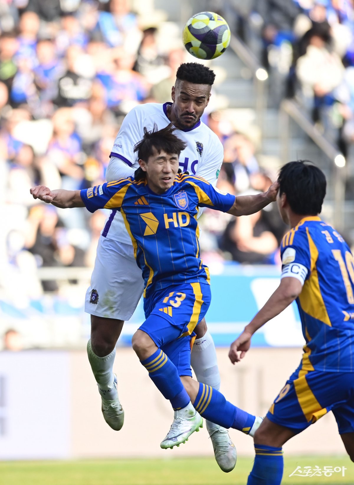 16일 울산문수축구경기장에서 열린 ‘하나은행 K리그1 2025’ 울산 HD FC와 FC안양의 경기에서 안양 모따가 결승골을 성공시키고 있다. 울산 | 주현희 기자 teth1147@donga.com