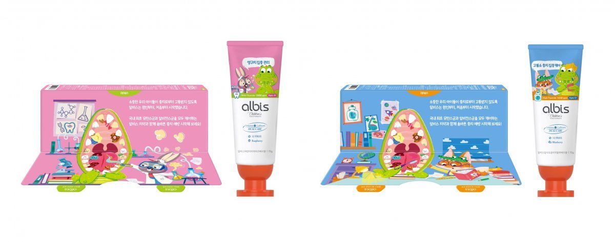 충치 원인균인 ‘뮤탄스균’과 ‘알비칸스균’의 복합 억제는 물론, 불소를 함유해 충치 예방 효과를 높였다. 4세 이상 어린이를 위해 1000ppm의 불소를 함유한 ‘어린이 치약 라즈베리향’, 6세 이상 어린이를 위해 1450ppm의 고불소를 함유한 ‘일사오공 치약 블루베리향’ 등 2종으로 구성했다.
