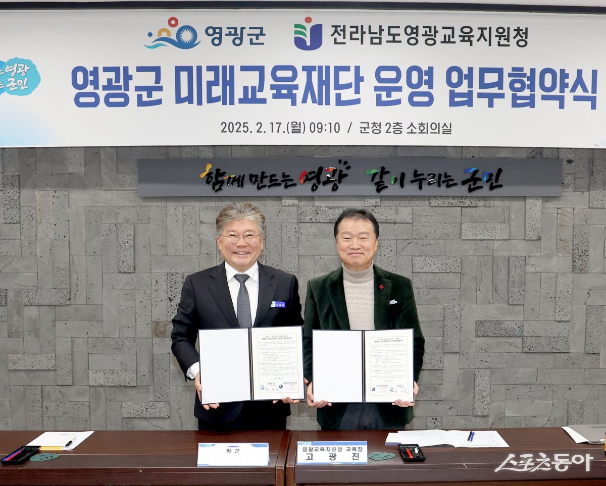 전남 영광군이 17일 영광교육지원청과 지역의 미래를 밝히고 나은 교육 환경을 제공하기 위한 영광군 미래교육재단 운영 업무협약식을 진행했다.