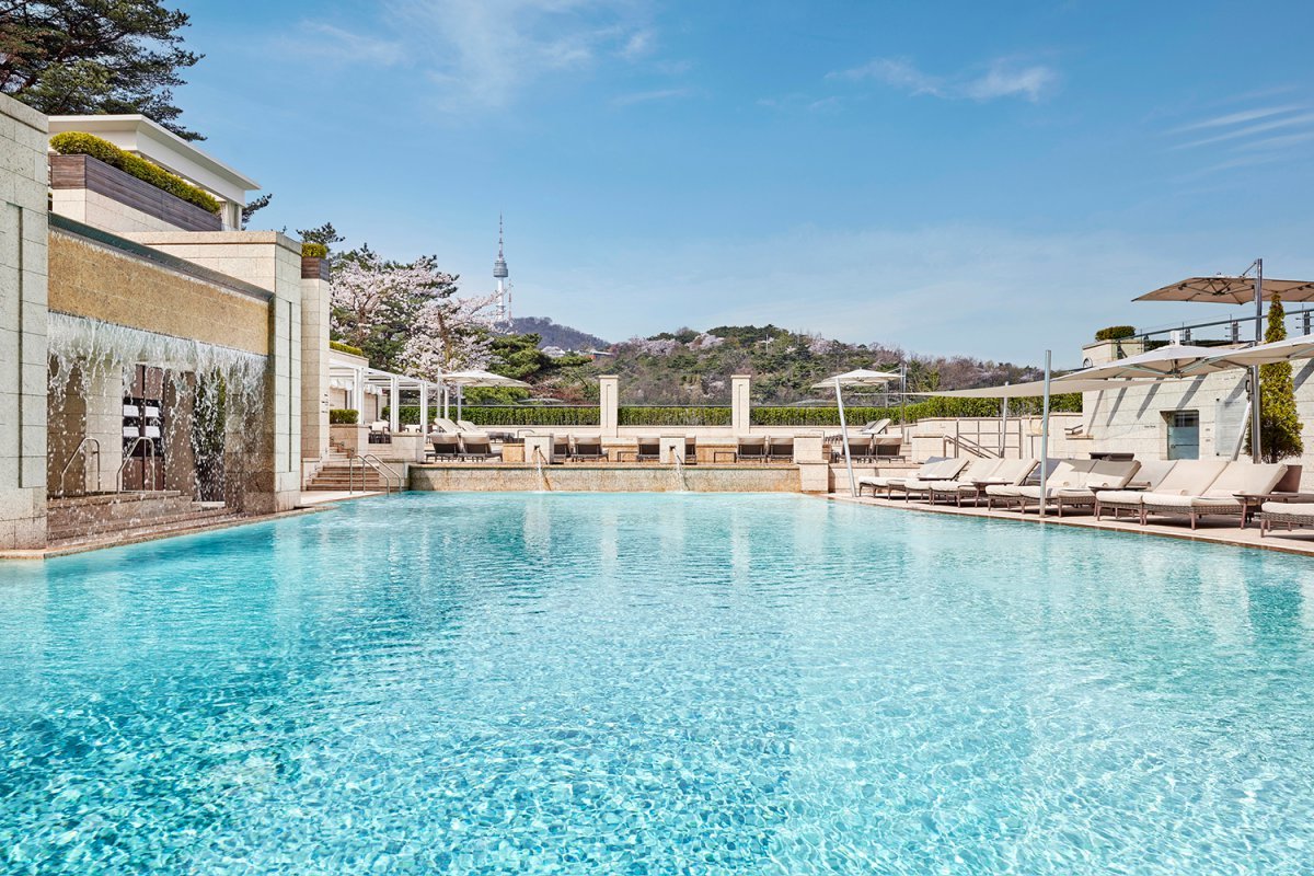‘어번 아일랜드’는 최고 32~34˚C로 운영되는 온수풀을 비롯해 온열선이 설치된 선베드와 히팅존(근적외선 온열 시스템)을 갖추고 있다. 이른 봄에도 따뜻한 야외 수영과 휴식을 즐길 수 있다. 봄 시즌에는 남산의 벚꽃을 볼 수 있다.