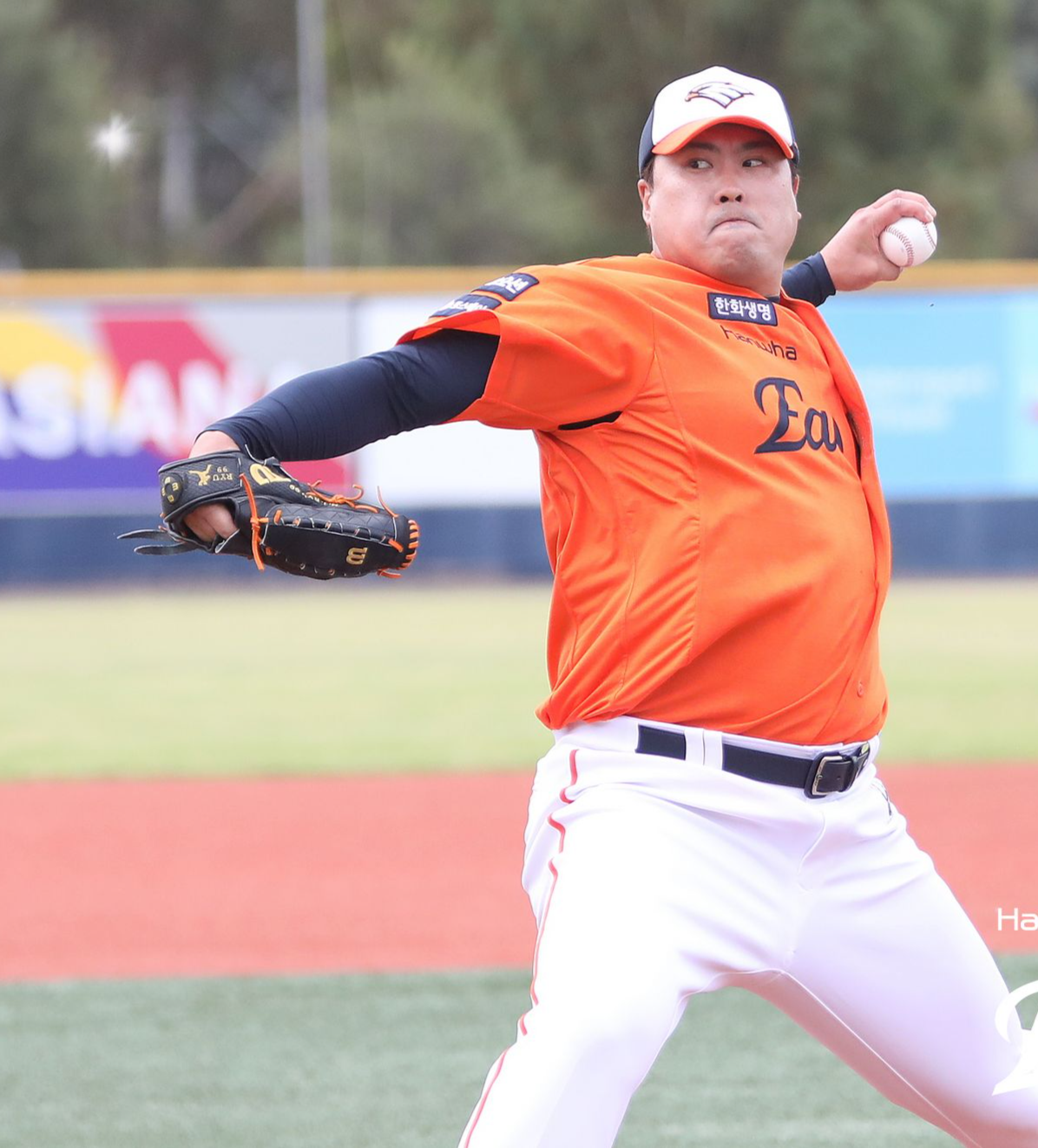 한화의 상징과도 같은 베테랑 투수 류현진은 B팀 선발로 등판해 18개의 공을 던졌다. 1이닝 무안타 1볼넷 1탈삼진 무실점으로 호주 1차 캠프 마지막 실전을 순조롭게 마무리했다. A팀 선발투수로 나선 프리에이전트(FA) 엄상백 역시 1이닝 1안타 1탈삼진 무실점으로 쾌투했다.