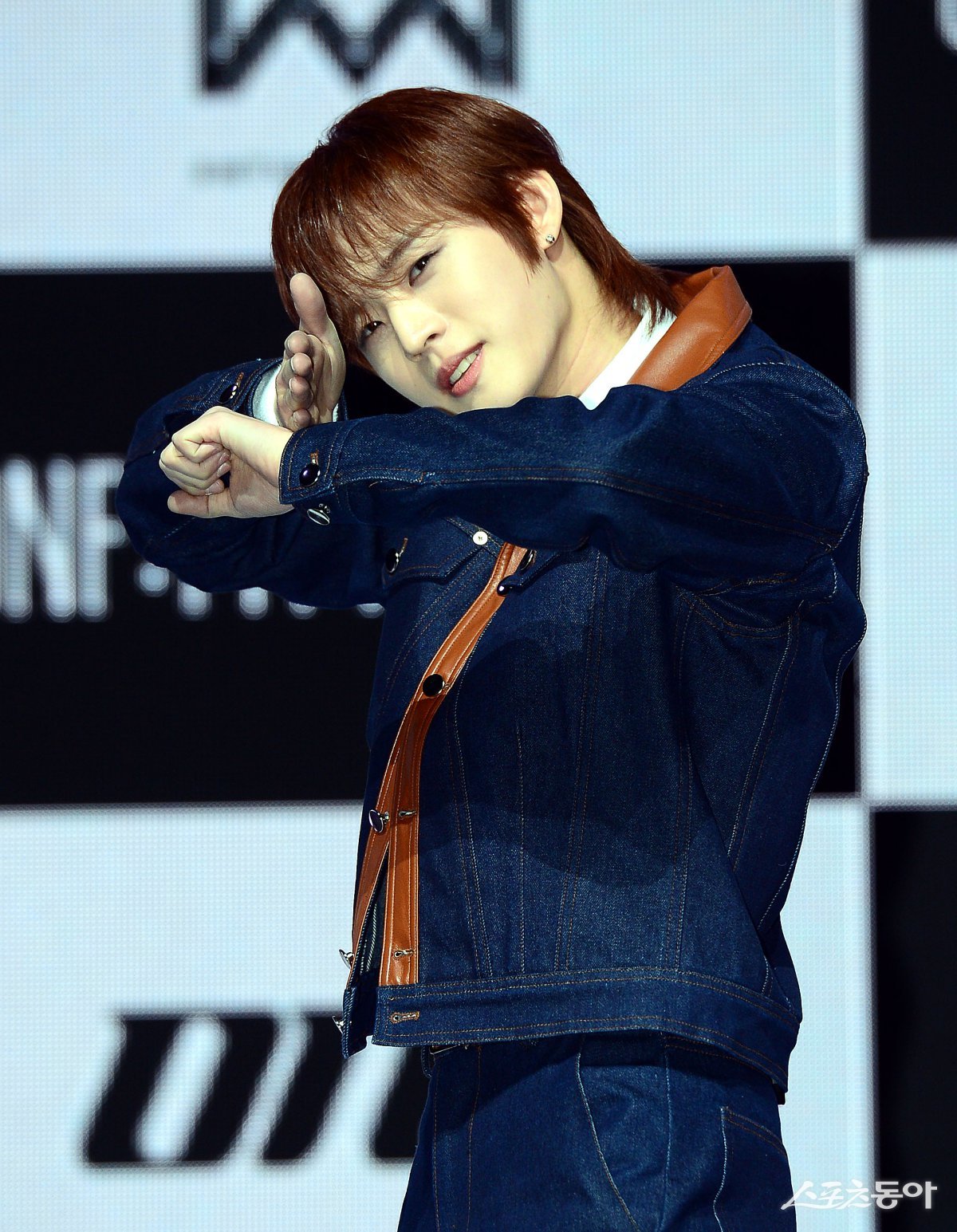 온앤오프(ONF) 효진이 18일 서울 한남동 블루스퀘어에서 열린 정규 2집 Part.1 ‘ONF:MY IDENTITY’ 쇼케이스에 참석해 카메라를 향해 포즈를 취하고 있다. 김민성 기자 marineboy@donga.com