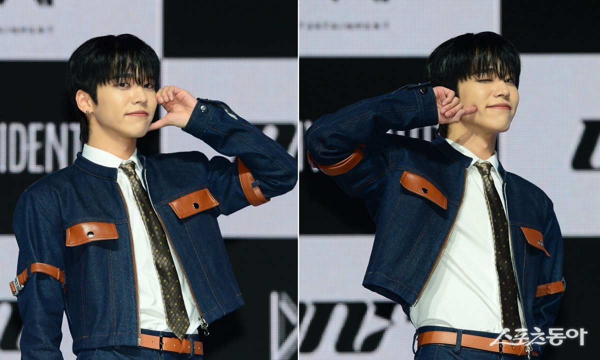 온앤오프(ONF) 유가 18일 서울 한남동 블루스퀘어에서 열린 정규 2집 Part.1 ‘ONF:MY IDENTITY’ 쇼케이스에 참석해 카메라를 향해 포즈를 취하고 있다. 김민성 기자 marineboy@donga.com