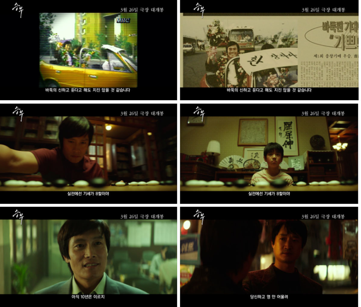 이번에 공개된 영화 ‘승부’ 예고편에서는 대한민국 바둑 레전드 조훈현으로 완벽 변신한 이병헌의 새로운 모습을 확인할 수 있다. 이병헌과 함께 고창석, 현봉식, 문정희, 김강훈까지 연기파 배우들이 예고편에 등장해 기대를 모은다.
