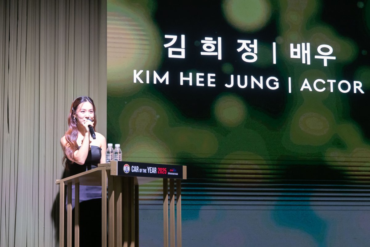 배우 김희정이 18일 저녁 서울 중구 장충동 크레스트 72에서 열린 한국자동차전문기자협회(AWAK) 주관 ‘2025 대한민국 올해의 차’시상식에서 사회를 맡아 완벽한 진행 솜씨를 선보이며 MC로서의 재능을 뽐냈다.