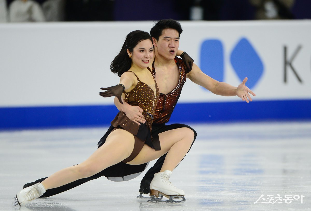 아이스댄스 임해나, 권예가 20일 서울 목동종합운동장 목동아이스링크에서 열린 ‘4대륙 피겨스케이팅 선수권대회’ 리듬댄스 연기를 하고 있다. 목동 | 주현희 기자 teth1147@donga.com