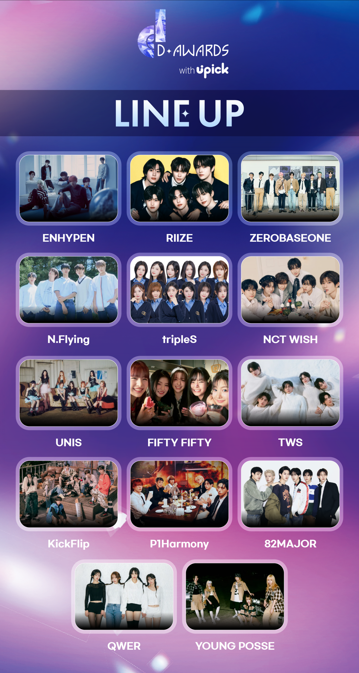 화려한 퍼포먼스 라인업은 ‘디 어워즈’를 손꼽아 기다린 이유다. 엔플라잉(N.Flying), 피원하모니(P1Harmony), ENHYPEN(엔하이픈), 피프티피프티(FIFTYFIFTY), 트리플에스(tripleS), ZEROBASEONE(제로베이스원), 라이즈(RIIZE), 82메이저(82MAJOR),영파씨(YOUNG POSSE), QWER(큐더블유이알), 투어스(TWS), NCT WISH(엔시티 위시), 유니스(UNIS), 킥플립(KickFlip)이 오직 ‘디 어워즈’에서만 볼 수 있는 무대를 준비하고 있다. 이들은 그룹의 독보적인 색깔을 유지하면서도 오직 ‘디 어워즈’를 위한 ‘킥’을 더한 무대를 선보인다.