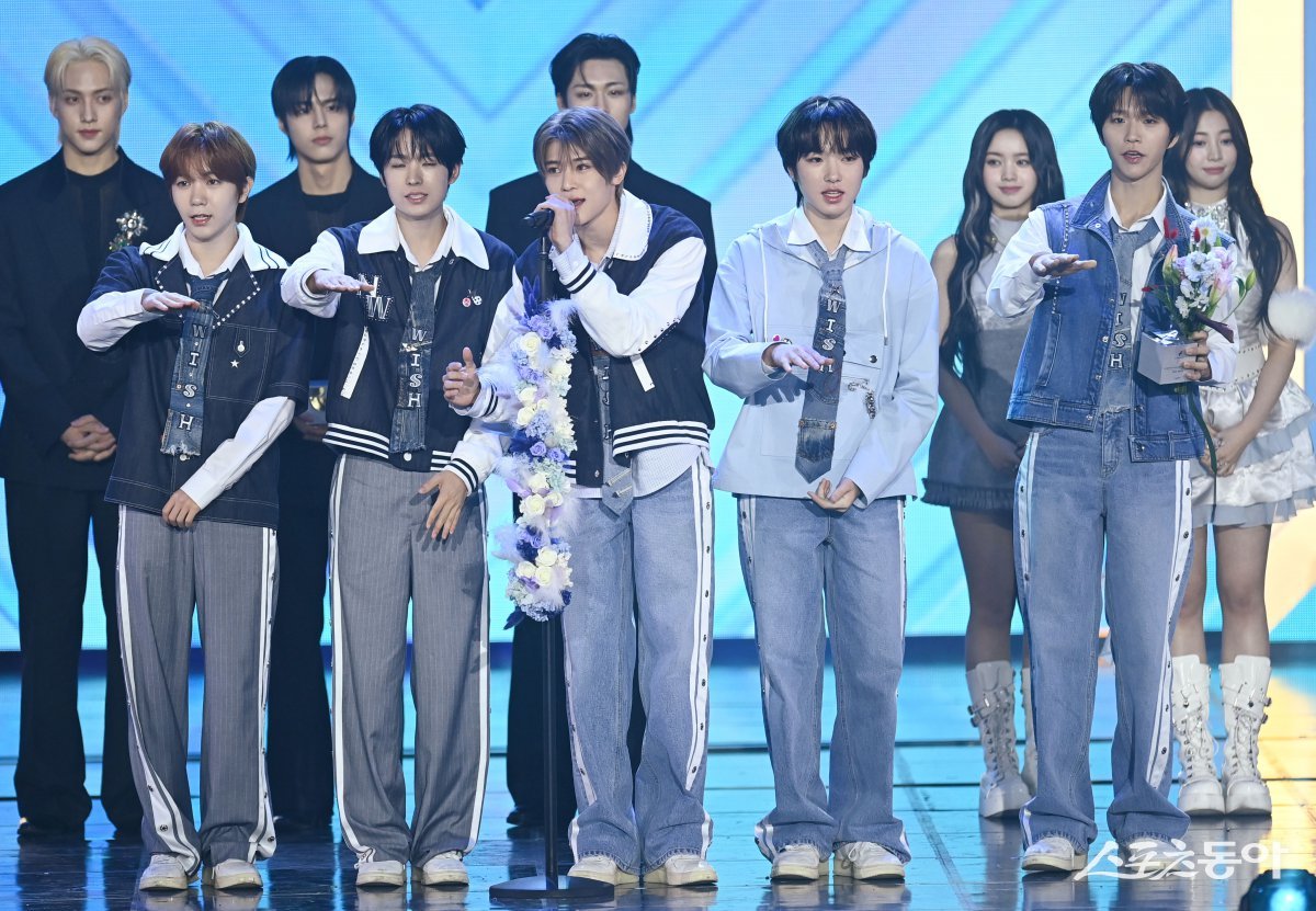 스포츠동아가 주최하고 ‘유픽(upick)’과 WSM이 주관하는 ‘유픽과 함께 하는 제1회 디 어워즈(D Awards with upick)’(주최: 스포츠동아, WSM · 주관: UPICK, WSM · 후원: G.K Link, ITTA)가 22일 서울 고려대학교 화정체육관에서 개최됐다. 디 어워즈 드림즈 실버라벨(D*AWARDS DREAMS SILVER LABEL)를 수상한 NCT WISH(엔시티 위시)가 수상 소감을 밝히고 있다. 주현희 기자 teth1147@donga.com